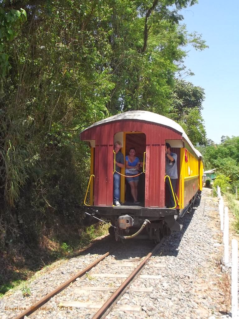 Neste último domingo, dia 9 de fevereiro, estivemos em mais um destes passeios disponibilizados àqueles interessados em conhecer um pouco da História da extinta EFSC, ou mesmo, reviver a experiência de passear dentro de um trem puxado por uma locomotiva a vapor, atualmente batizado de Passeio de Trem da EFSC. Para chegar ao local do passeio de trem, passamos pelas comunidade de (Clicar sobre) Warnow e Ilse – Indaial e Ascurra respectivamente e fizemos alguns registros deste cenário histórico da EFSC.